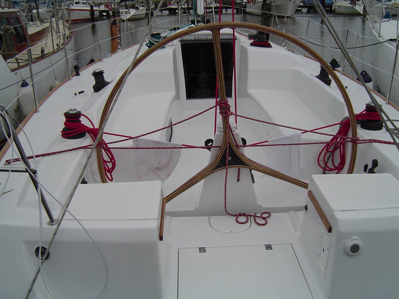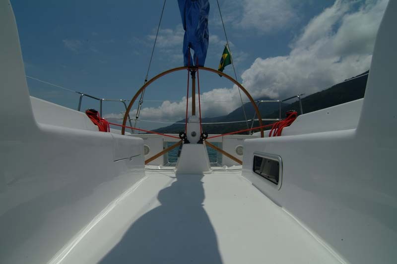 posição cômoda inclusive quando o barco veleja adernado.