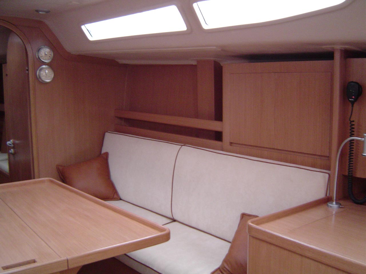 para guarda de material de navegação e compartimento para cartas náuticas.