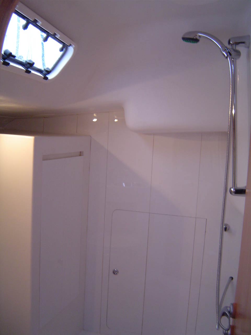 Entrada pelo fundo do barco com registro de segurança.