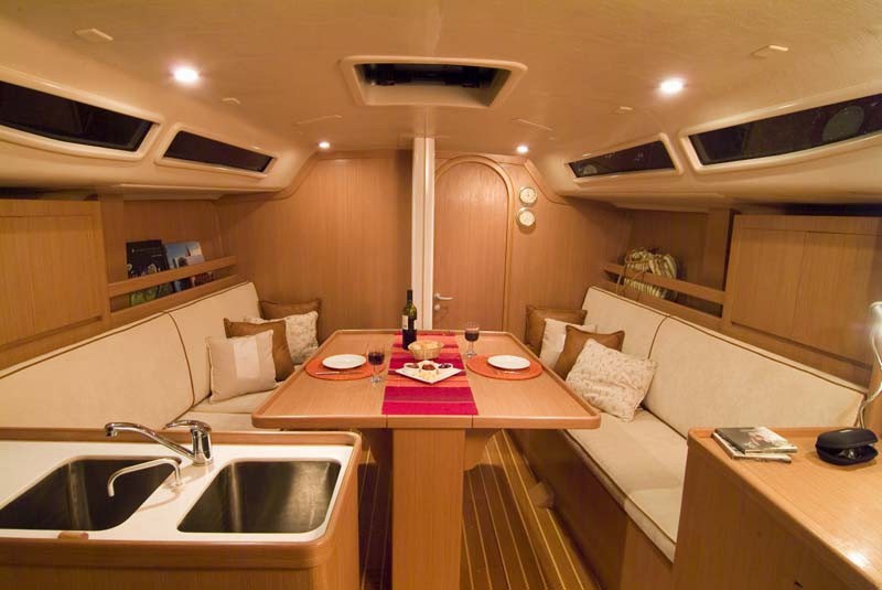 dos encostos dos sofás. Uma gaiuta e duas vigias garantem a boa circulação de ar