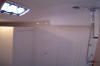 laterais superiores, armários e prateleiras em todo comprimento. Nicho atrás